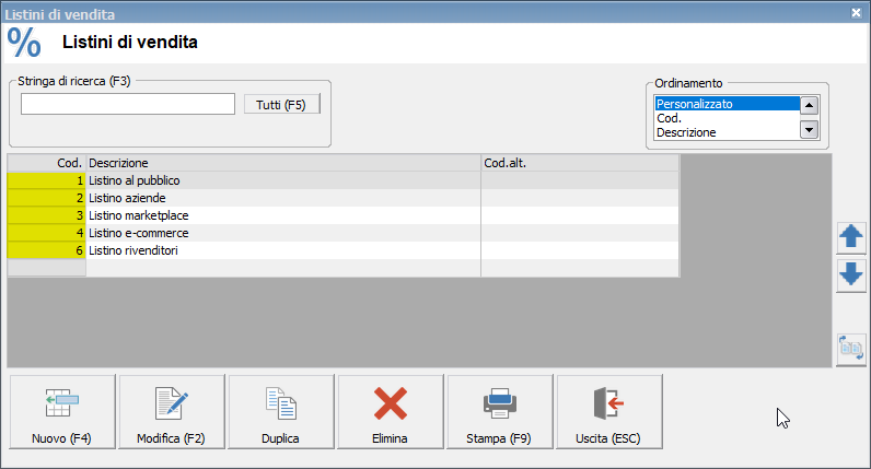 Per codice listino si intende il codice univoco del listino (Cod.)