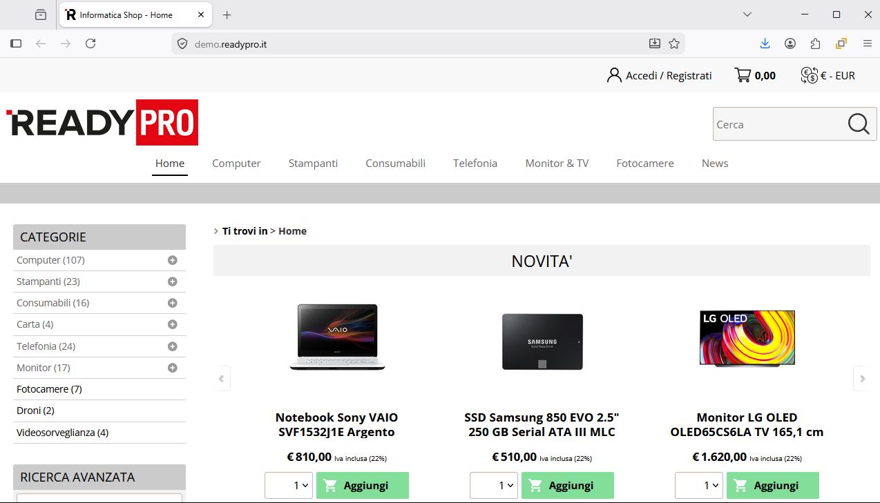 Il modulo Ecommerce di Ready Pro rappresenta il ponte tecnologico tra la gestione logistico-amministrativa interna e la vendita online.
