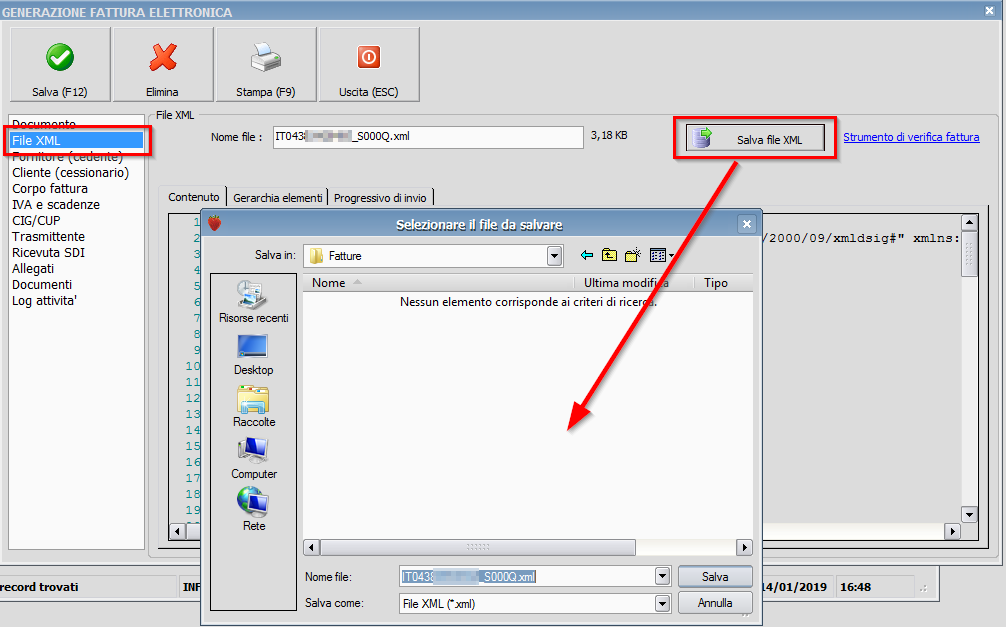 1) Prima di tutto va salvato il file XML della fattura elettronica in una cartella sul disco locale