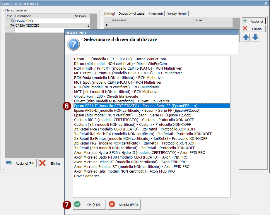 Ready Pro integra nativamente un driver (EpsonFP2.ocx) per il collegamento ai registratori di cassa Epson della serie FP.