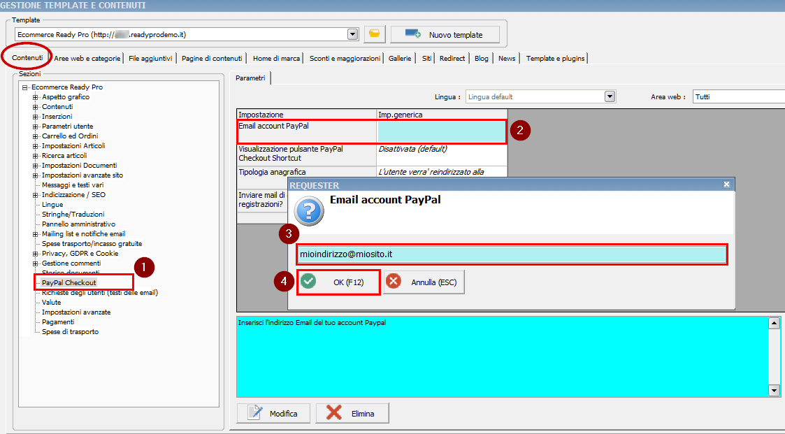 La prima cosa da fare è eseguire la procedura di attivazione del plugin attraverso l'impostazione Email account PayPal: qui occorre inserire l'indirizzo email del proprio account PayPal.