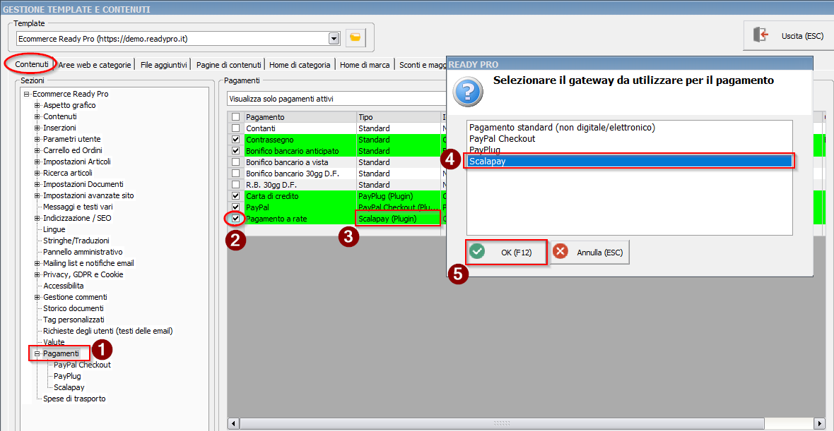 Occorre poi associare il plugin al relativo pagamento utilizzabile sul sito ecommerce.