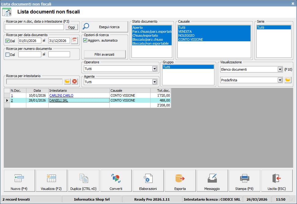 Le nozioni di base per l'utilizzo di questa procedura sono descritte nella sezione Nozioni di base - Gestione dei documenti del modulo magazzino.