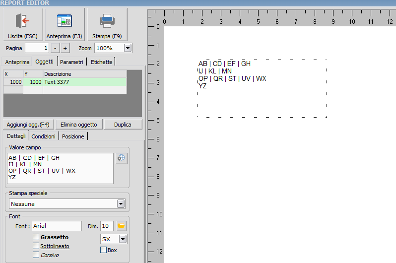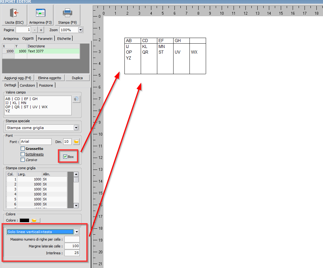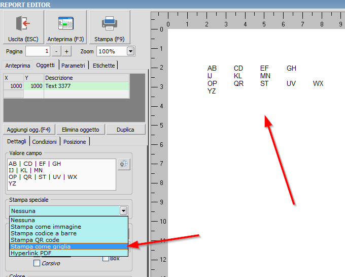 Questa funzione di stampa avanzata consente di stampare dei valori in griglia sui report di stampa.