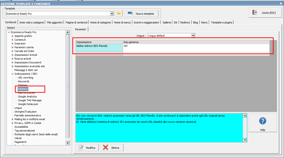 Volendo però consolidare i nuovi URL e' prevista una opzione sul template che effettua un redirect 301 automatico degli URL "obsoleti" verso la versione piu' aggiornata