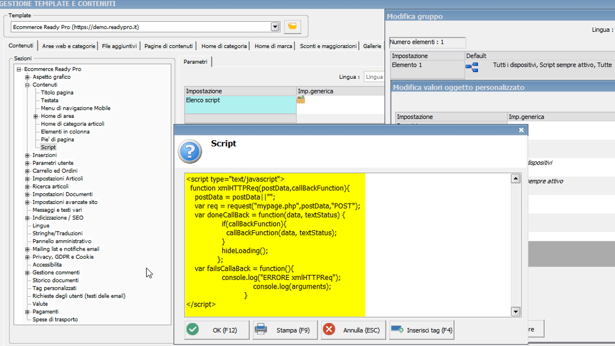 Includere codice javascript personalizzato nelle pagine del sito ecommerce