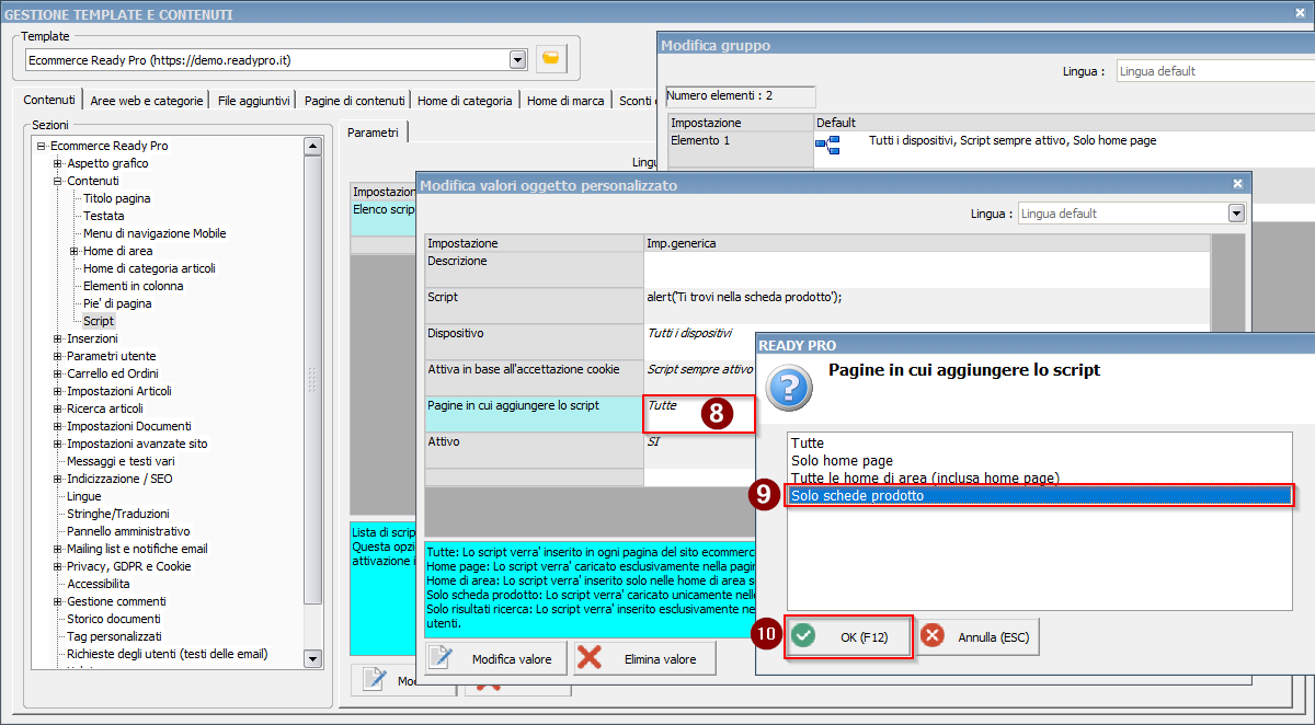Dopodichè dovremo attivare l’opzione Solo schede prodotto all’interno della condizione Pagine in cui aggiungere lo script.