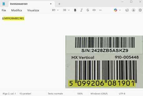 Questo significa che se premiamo il carattere § sulla tastiera, Ready Pro attiverà questa serie di automatismi in modo da prevedere l'immissione del codice a barre: